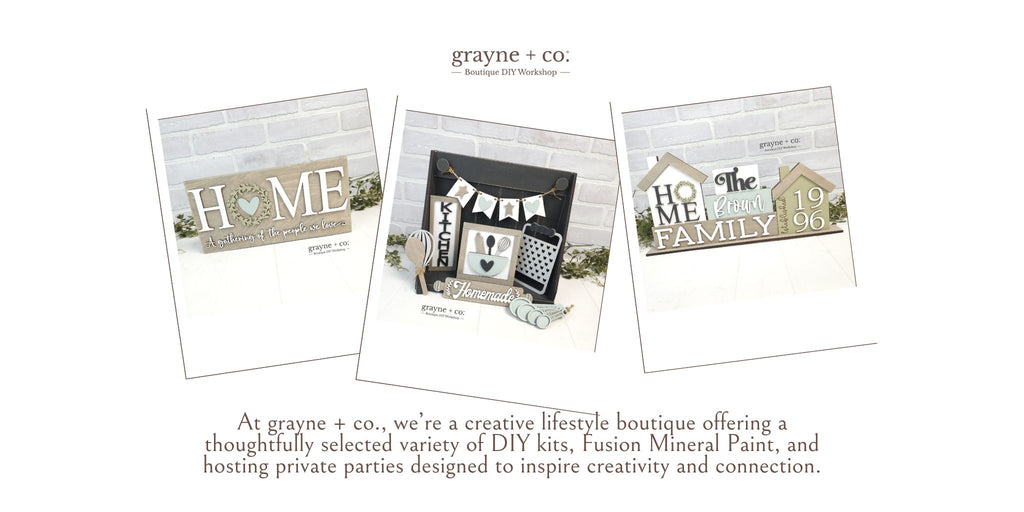 Thank you for being a part of grayne + co. ❤️ For the past seven years, it has been an absolute joy to serve Lethbridge and the surrounding area with DIY kits, workshops, Fusion Mineral Paint, and more. However, all good things must come to an end. As of March 28th, our retail location has closed. I’m incredibly grateful for your support, kindness, and for sharing in this dream with me. None of this would have been possible without you. The YouTube Channel will still be available with the video tutorials and the Facebook and Instagram pages will remain open. https://www.youtube.com/@grayneandco Fusion Mineral Paint can be found at Freddie's Paint. If you’d like to follow along and gain access to the website, be sure to join my private Facebook group: CREATIVE@home! https://www.facebook.com/groups/creativeathomehaven With heartfelt thanks, Laura 😊